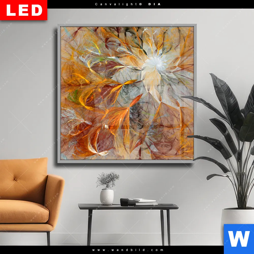 Wechselmotiv Acrylglas Canvalight® DIA | Abstrakter Blütenzauber in orange | Quadrat