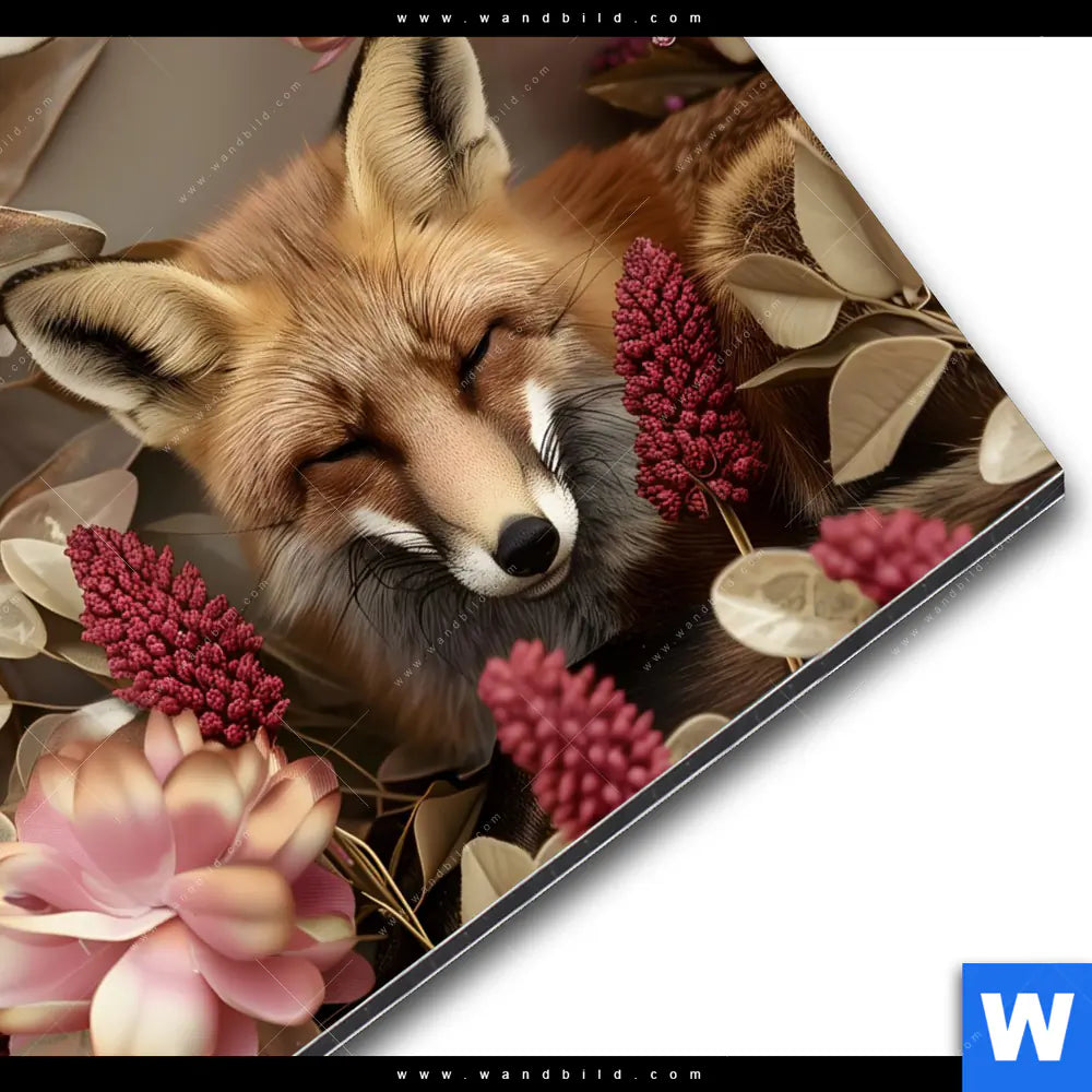 Alu-Dibond Bild | Naturbild Fuchs und Blumen | Quadrat