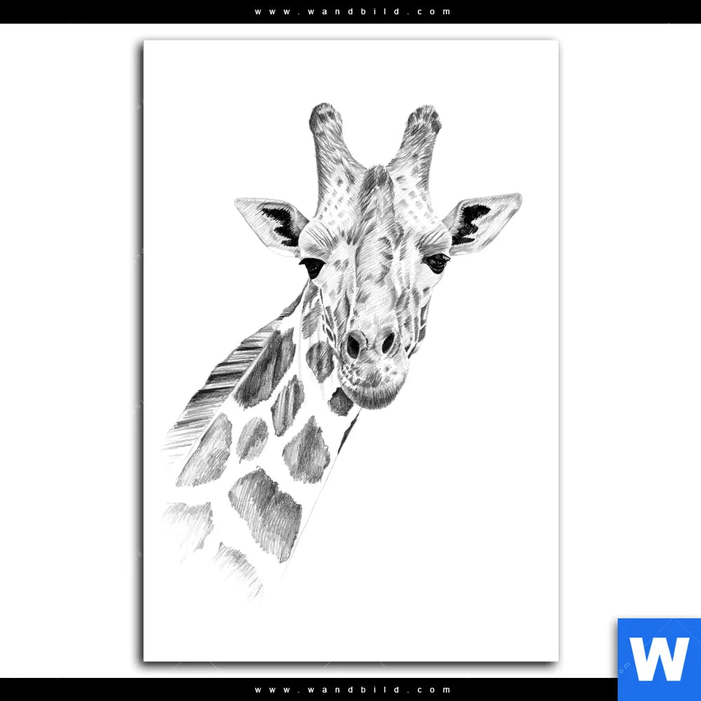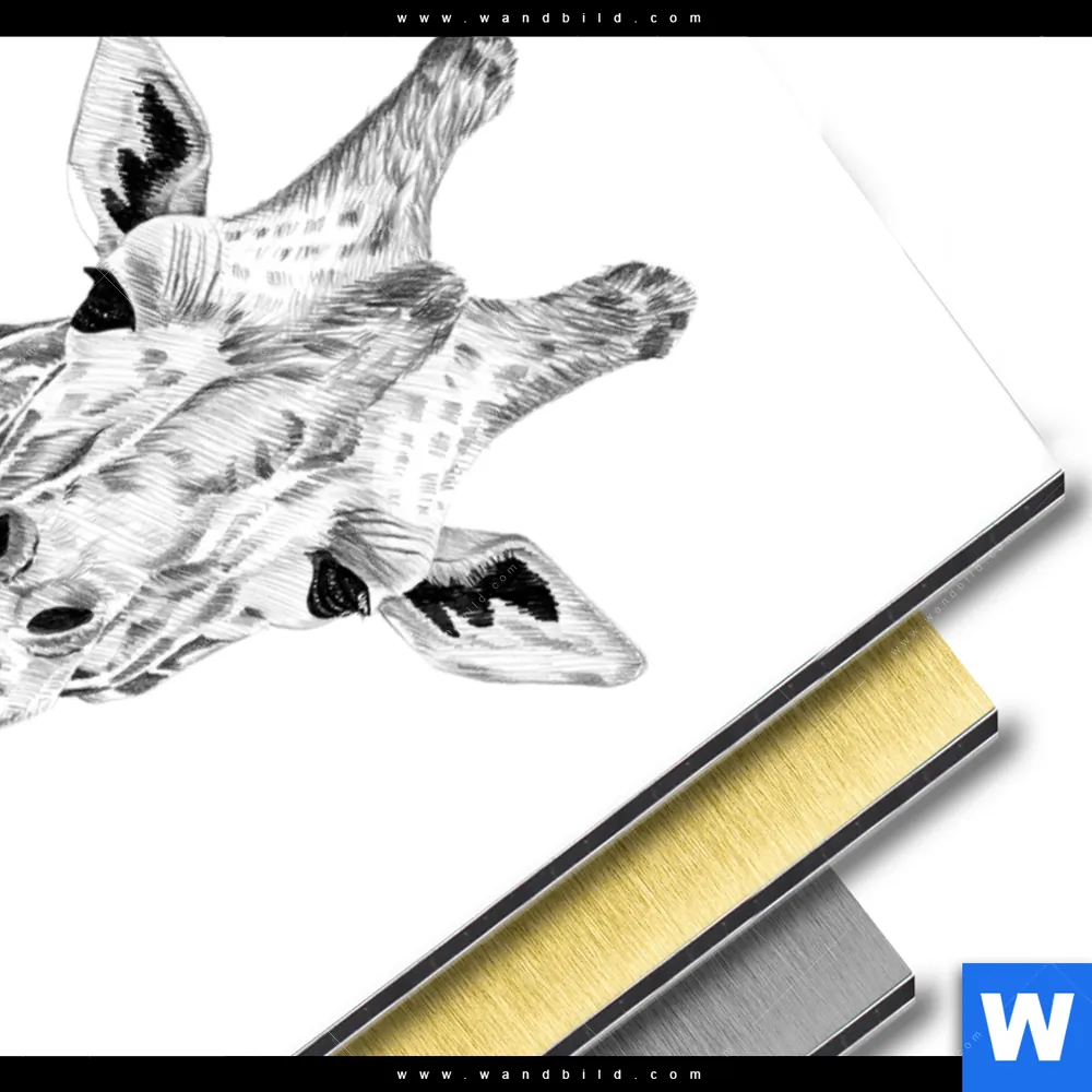 Aluminiumbild gebürstet | Bleistiftzeichnung Giraffe | Hochformat