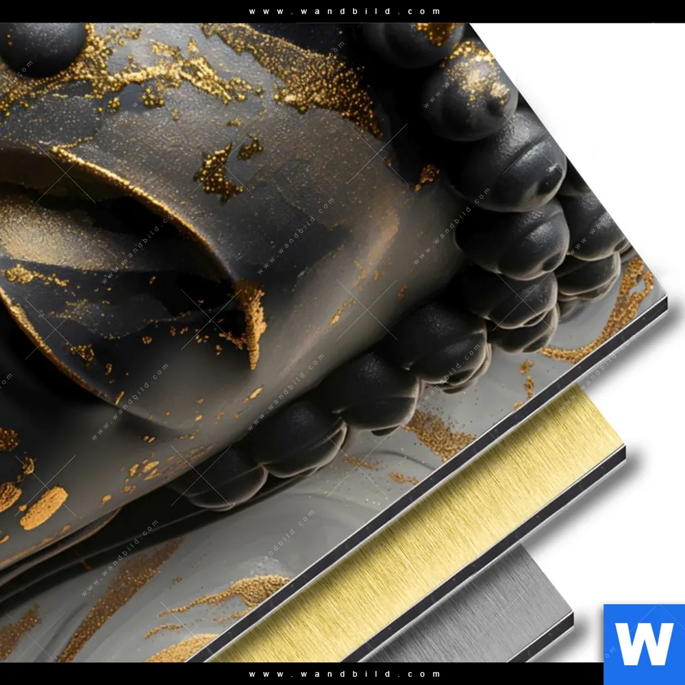 Aluminiumbild gebürstet | Goldener Buddha Fluid Art | Hochformat