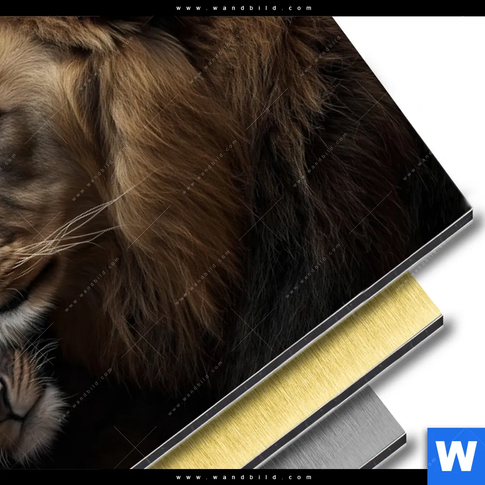Aluminiumbild gebürstet | Löwen - Stärke und Zärtlichkeit | Querformat