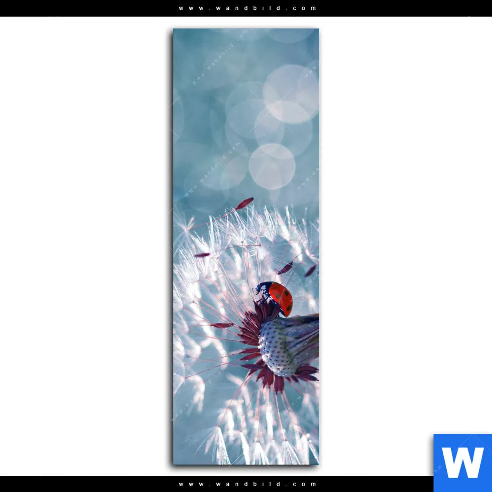 Aluminiumbild gebürstet | Pusteblume & Marienkäfer | Schmal