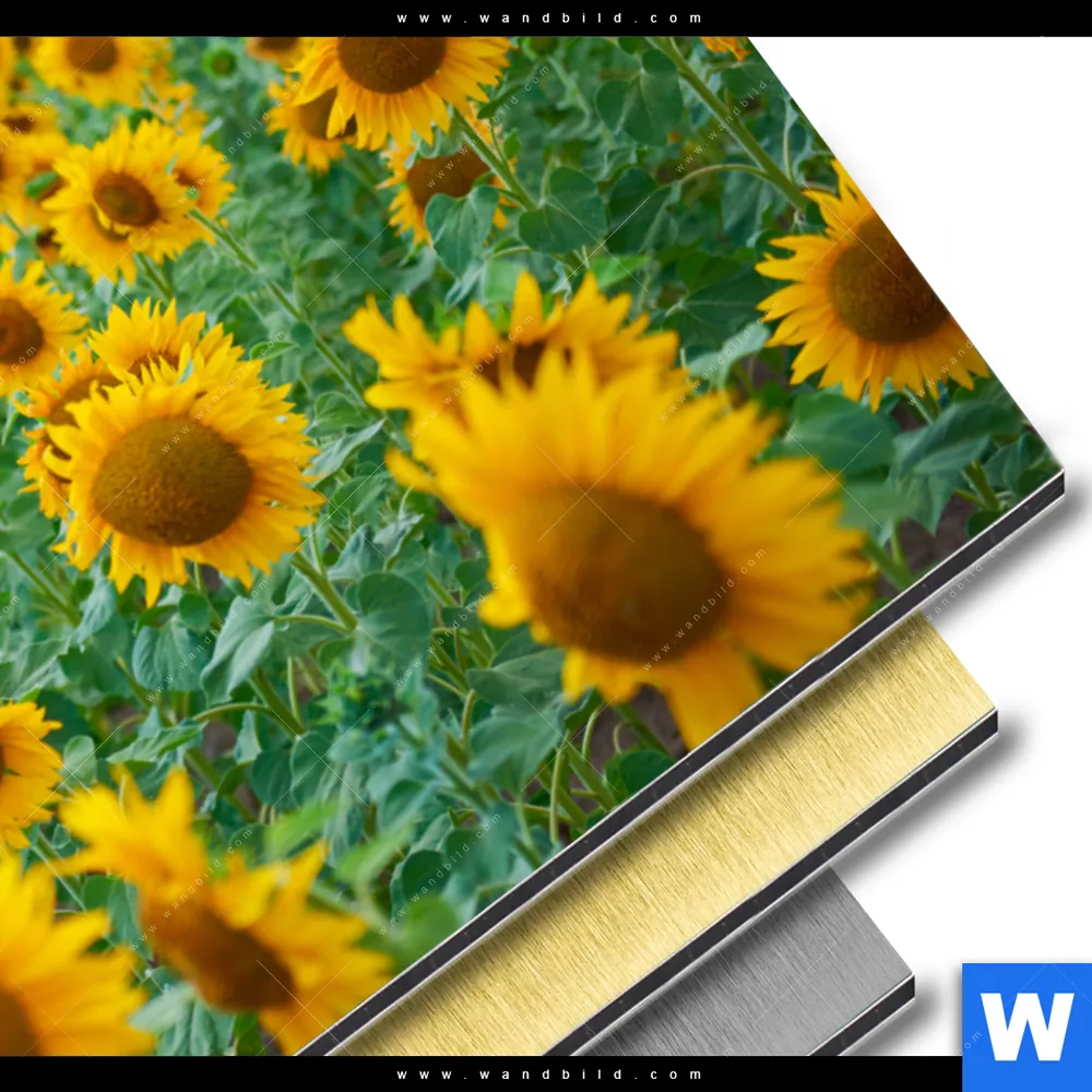 Aluminiumbild gebürstet | Sonnenblumenfeld | Querformat