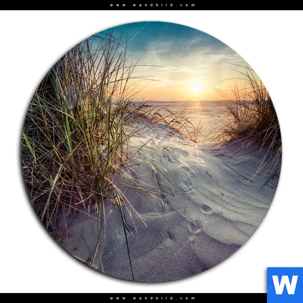 Aluminiumbild gebürstet | Strandlandschaft mit Gras | Rund
