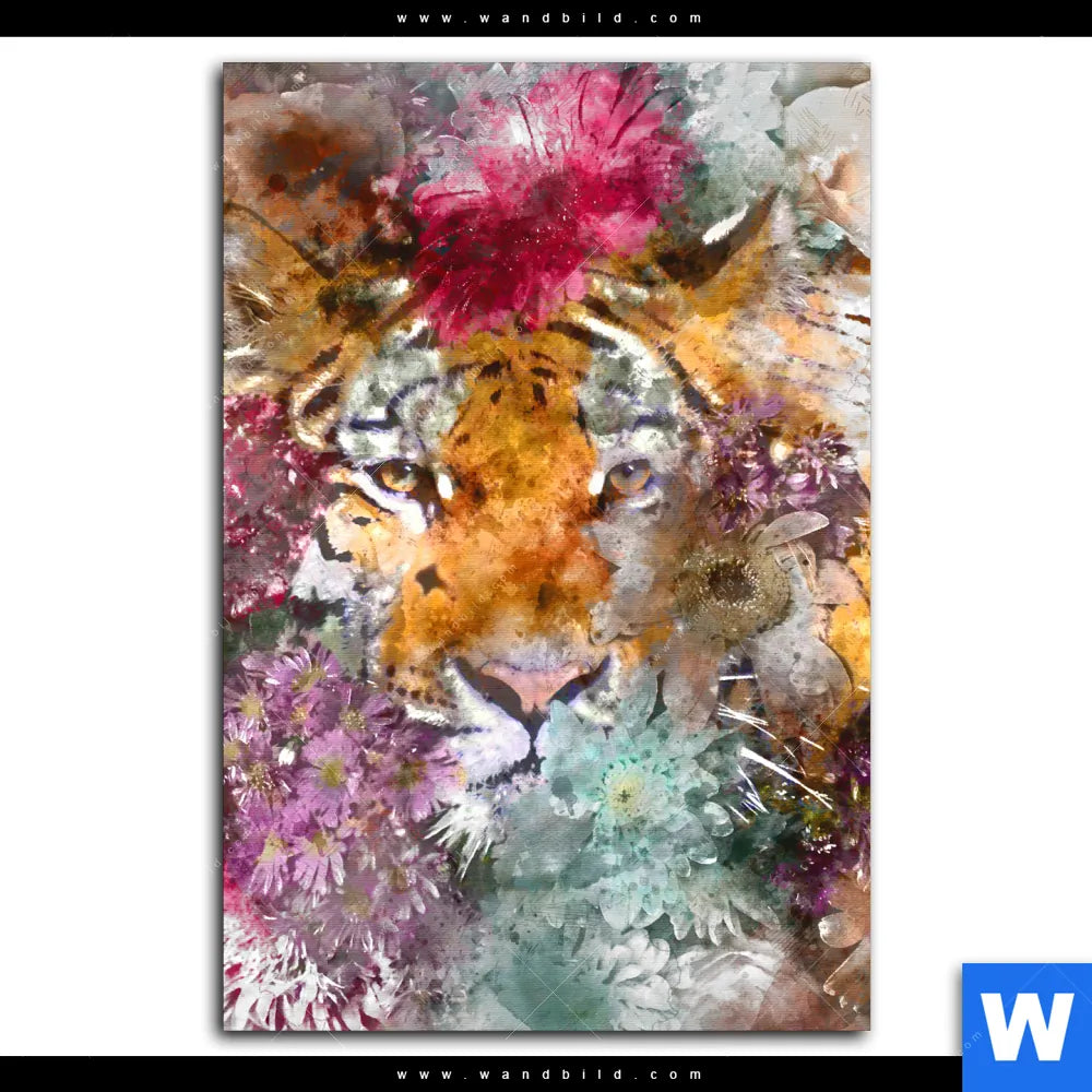 Aluminiumbild gebürstet | Tiger & Blumen | Hochformat