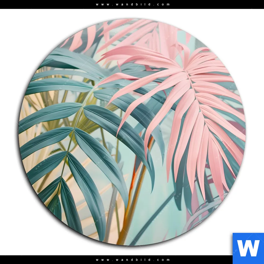 Aluminiumbild gebürstet | Tropische Blätter in Pastellfarben | Rund