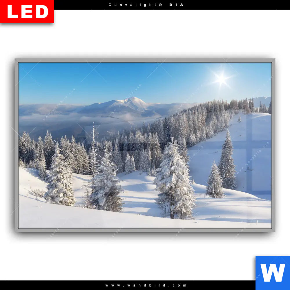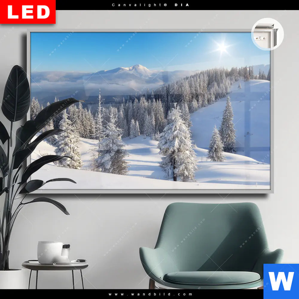 Canvalight® DIA Leuchtbild | Berge und Wälder in Schnee | Querformat