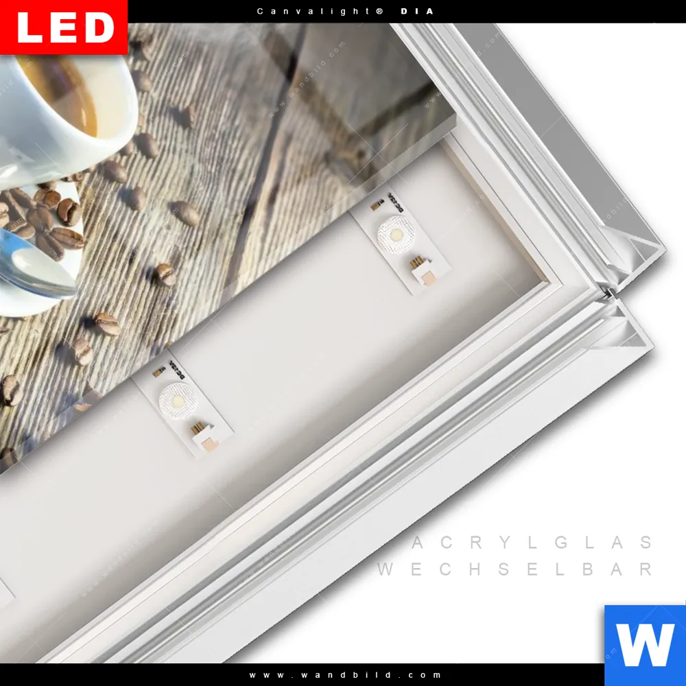 LED-Glasbild mit austauschbarem Acrylglas-Druck (Wechselbild)