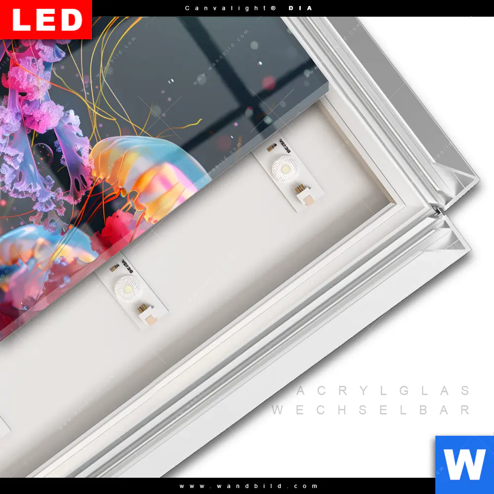 LED-Glasbild mit austauschbarem Acrylglas-Druck (Wechselbild)