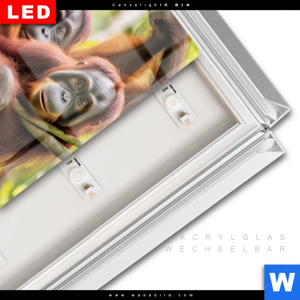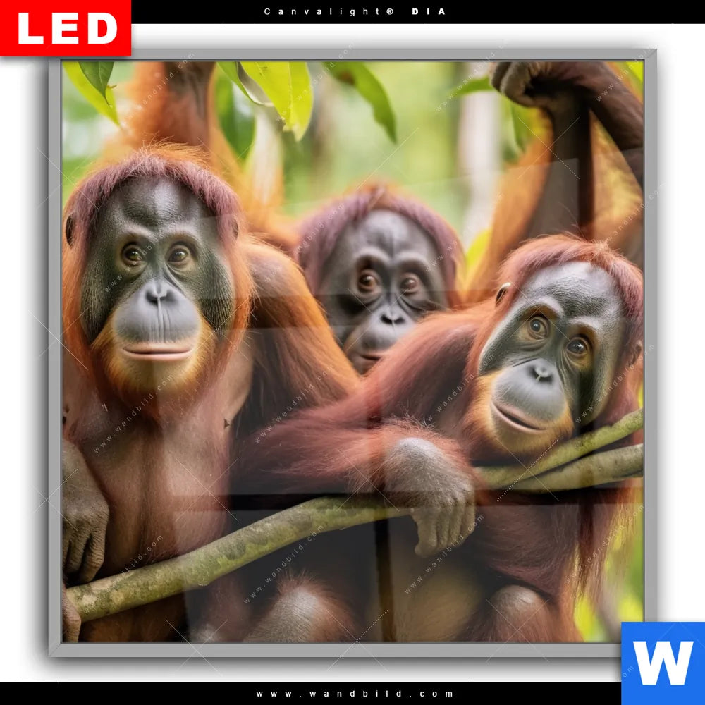 Canvalight® DIA Leuchtbild | Orang Utan Familie im Regenwald | Quadrat