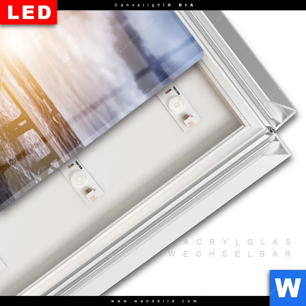 LED-Glasbild mit austauschbarem Acrylglas-Druck (Wechselbild)