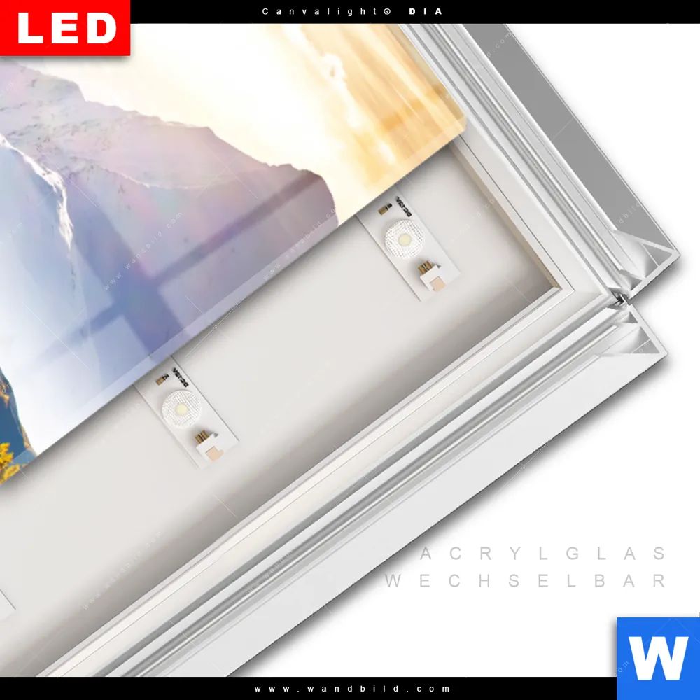LED-Glasbild mit austauschbarem Acrylglas-Druck (Wechselbild)