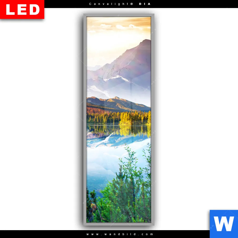 Canvalight® DIA Leuchtbild | Sonniger Tag am Bergsee | Schmal