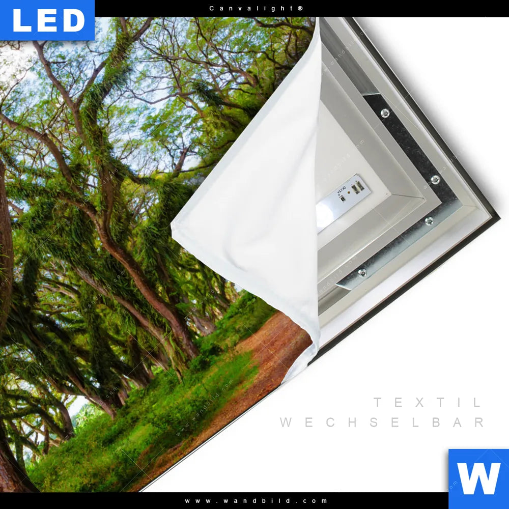 LED-Textilrahmen-Bild mit austauschbarem Wald - Bäume, Landschaften Textil-Druck (Wechselbild)