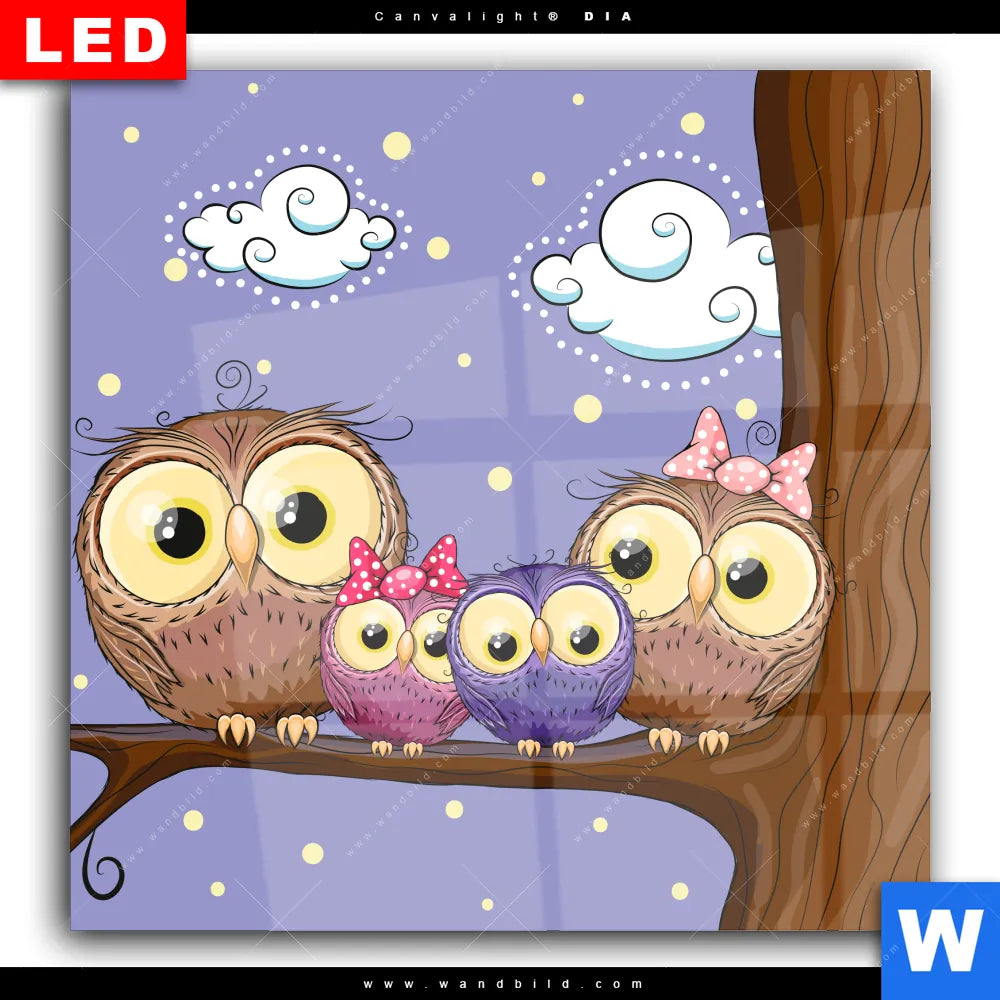 Wechselmotiv Acrylglas Canvalight® DIA | Eulenfamilie | Quadrat