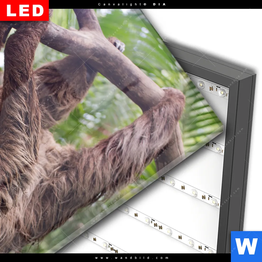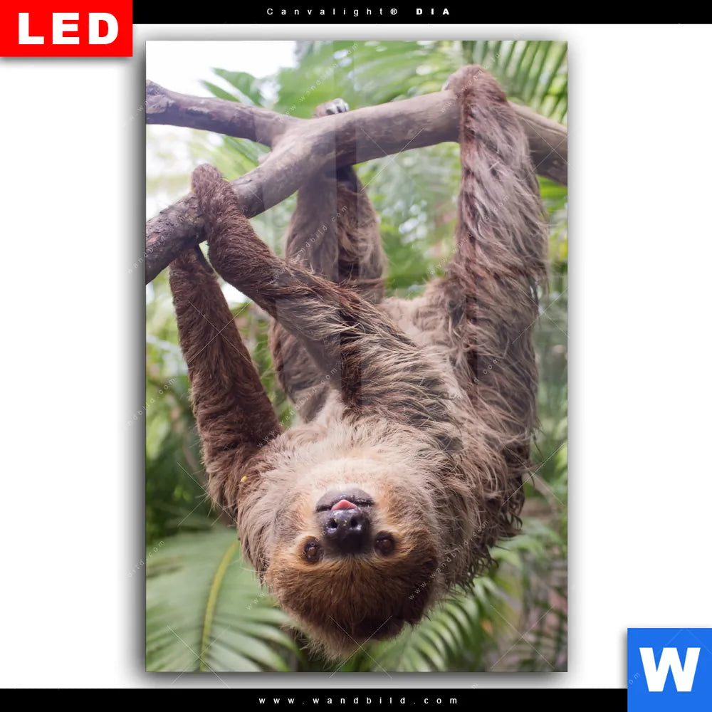 Wechselmotiv Acrylglas Canvalight® DIA | Faultier streckt Zunge raus | Hochformat