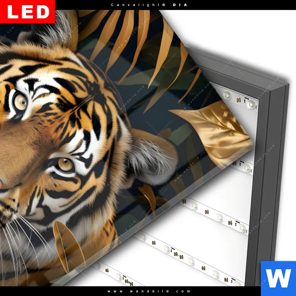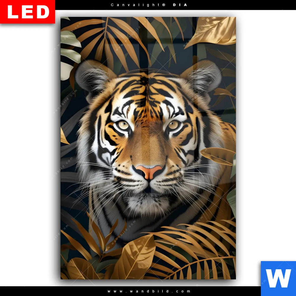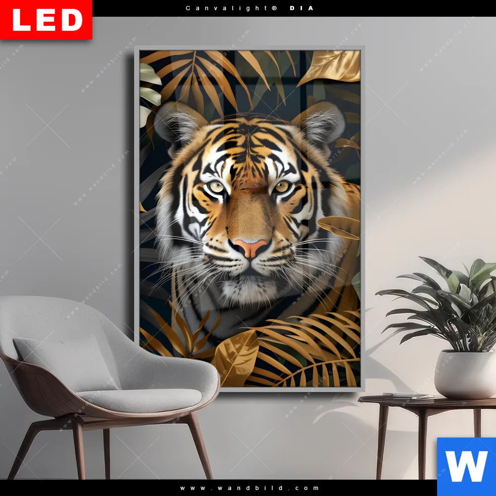 Wechselmotiv Acrylglas Canvalight® DIA | Majestätischer Tiger im Dschungel | Hochformat