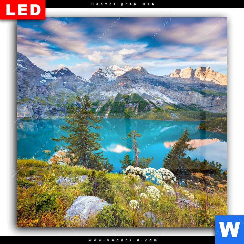 Wechselmotiv Acrylglas Canvalight® DIA | Sommermorgen am Bergsee | Quadrat