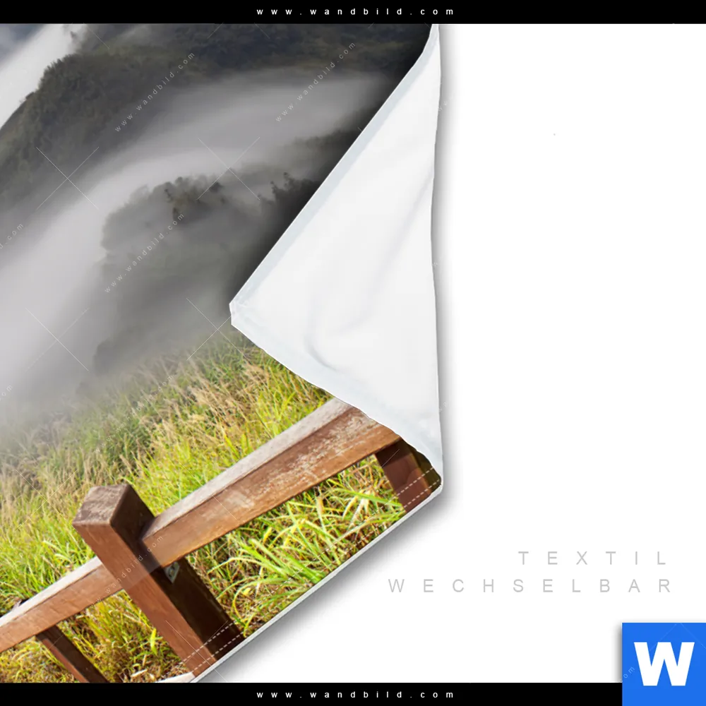 Wechselmotiv Textil | Holztreppe auf Berg mit Wolken | Querformat