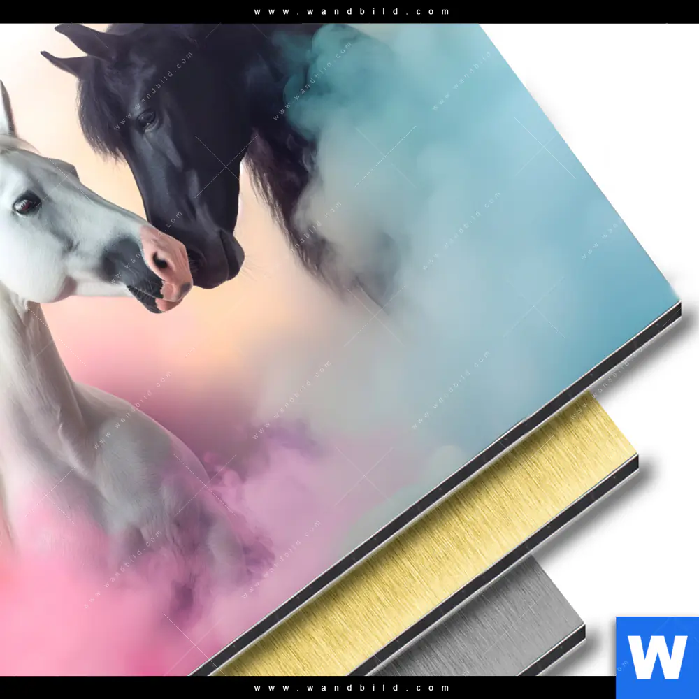 Aluminiumbild gebürstet | Pferdeliebe in Pastellfarben | Quadrat