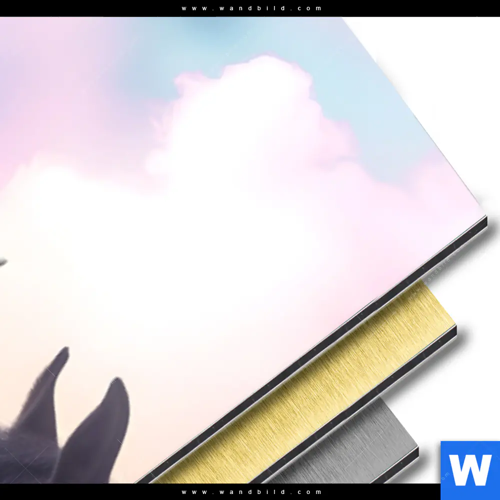 Bitte beachte: Die auf deinem Computer oder Handy abgebildeten Farben der Motive können von den Originalfarben des gedruckten Aluminiumbild gebürstet abweichen. Die Farben werden auf dem Computerbildschirm anders dargestellt, als auf einem gedruckten Aluminiumbild gebürstet. Computer und Handys verwenden das RGB-Farbsystem, während der Druckprozess das CMYK-Farbsystem nutzt. Ebenso spielt die Kalibrierung des Monitors eine entscheidende Rolle.