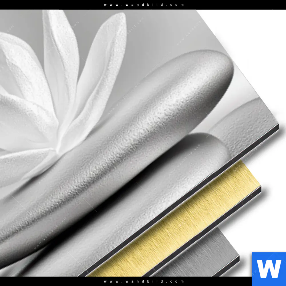 Aluminiumbild gebürstet | Silberne Zen Harmonie | Panorama