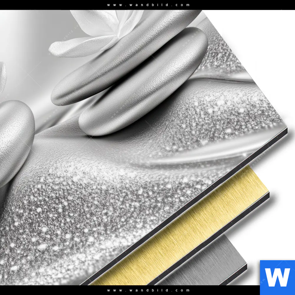 Aluminiumbild gebürstet | Silberne Zen Harmonie | Quadrat
