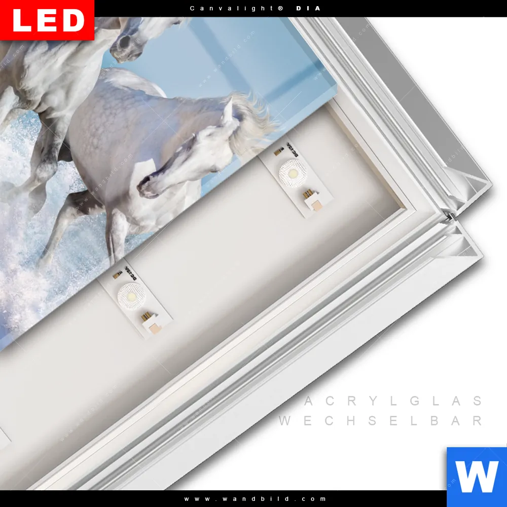 LED-Glasbild mit austauschbarem Acrylglas-Druck (Wechselbild)