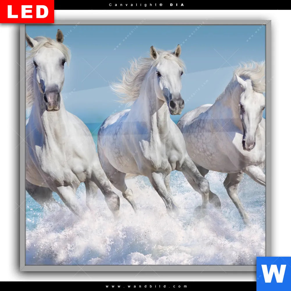 Canvalight® DIA Leuchtbild | Pferdeherde am Strand | Quadrat