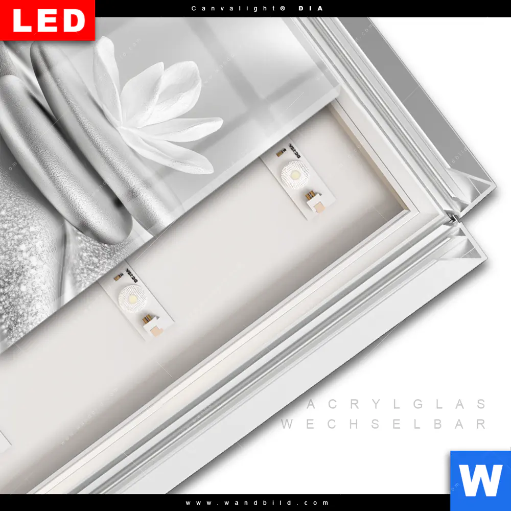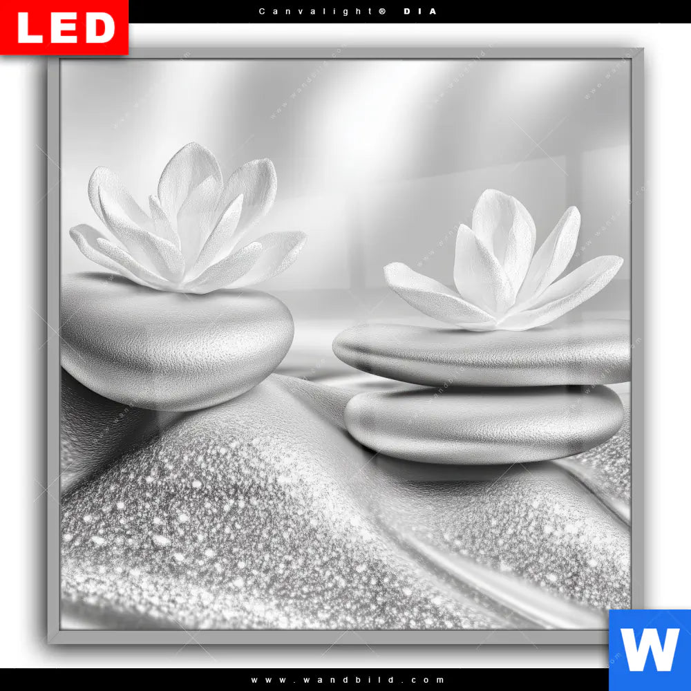 Canvalight® DIA Leuchtbild | Silberne Zen Harmonie | Quadrat
