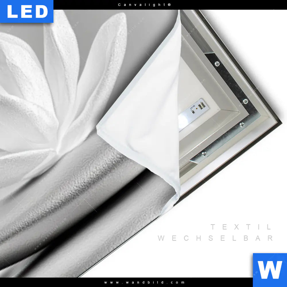 Canvalight® TEX Leuchtbild | Silberne Zen Harmonie | Panorama