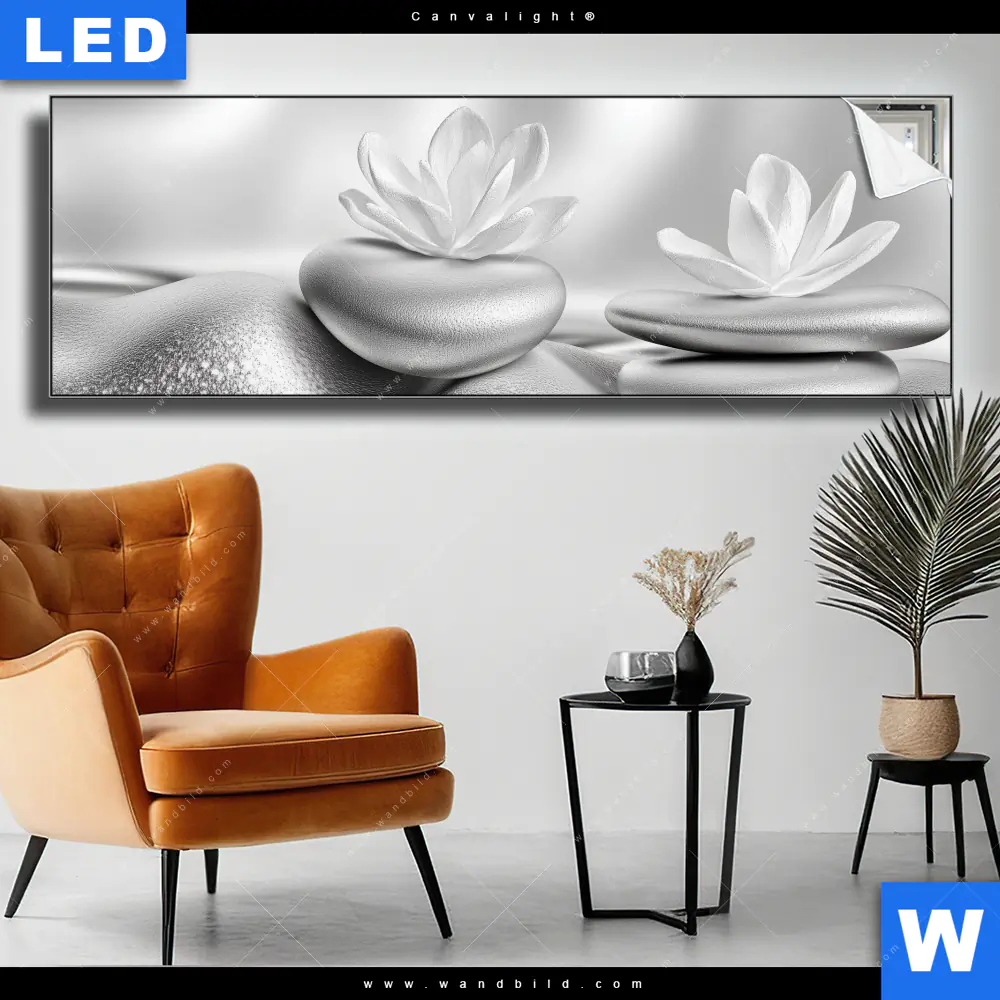 Canvalight® Leuchtbild | Silberne Zen Harmonie | Panorama