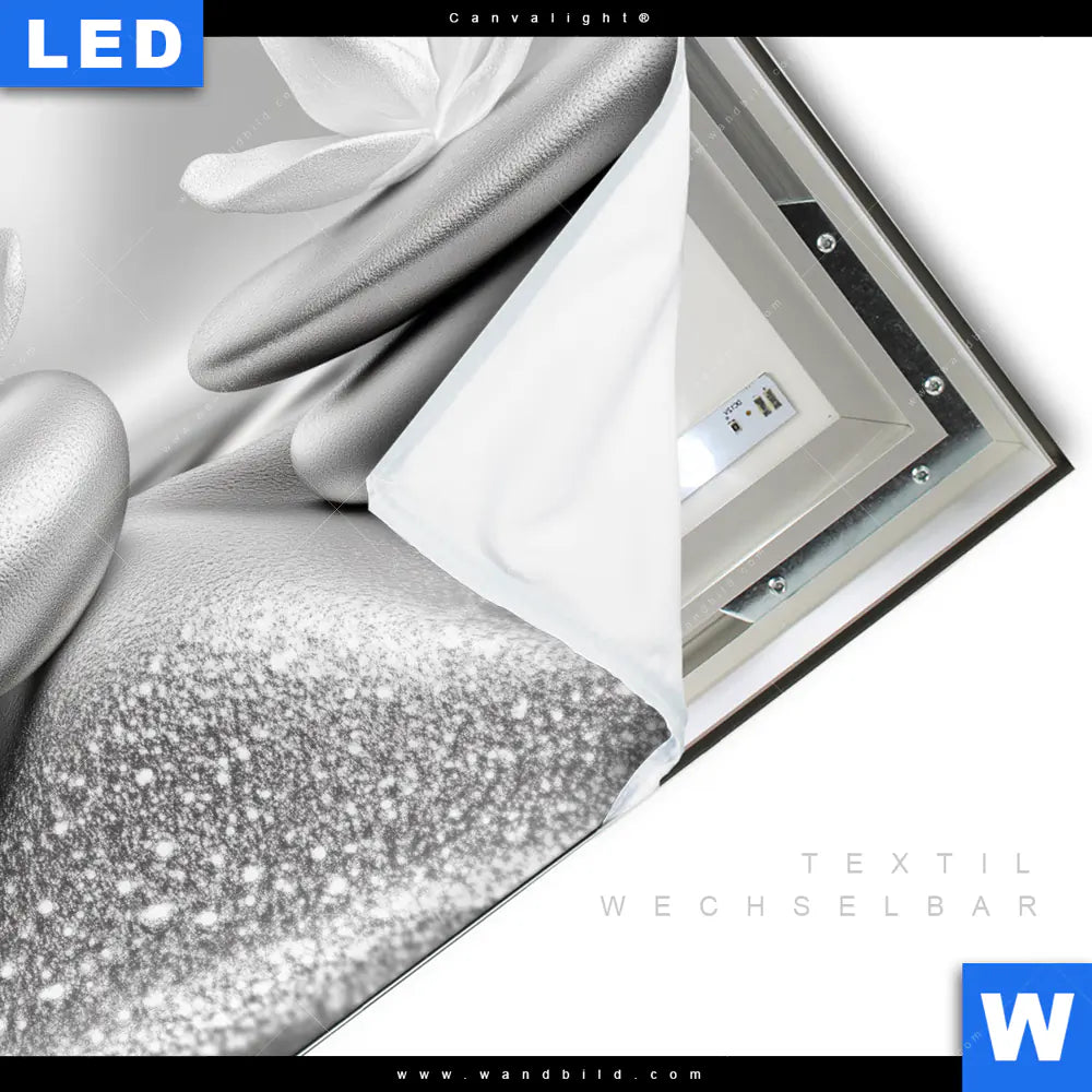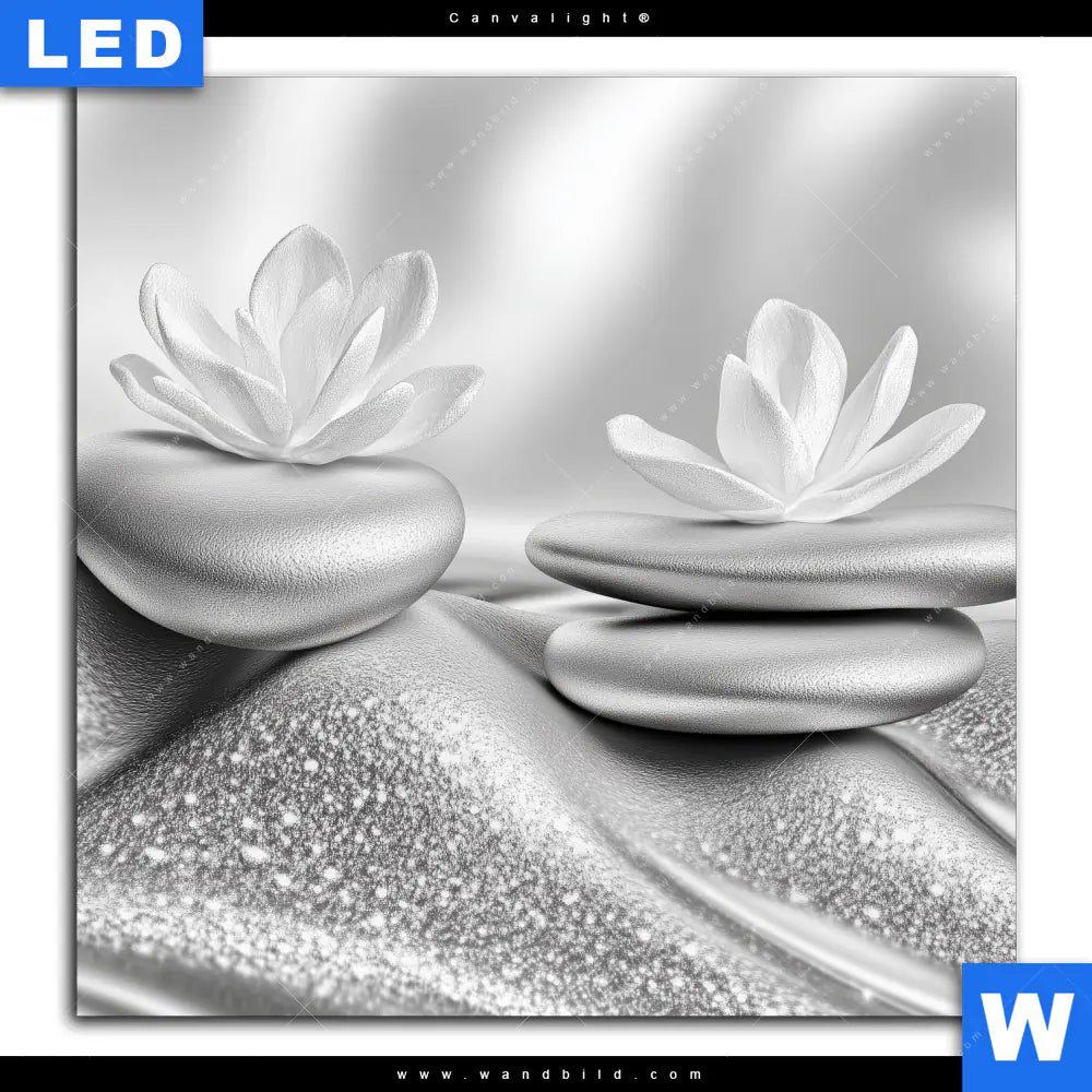 Canvalight® TEX Leuchtbild | Silberne Zen Harmonie | Quadrat