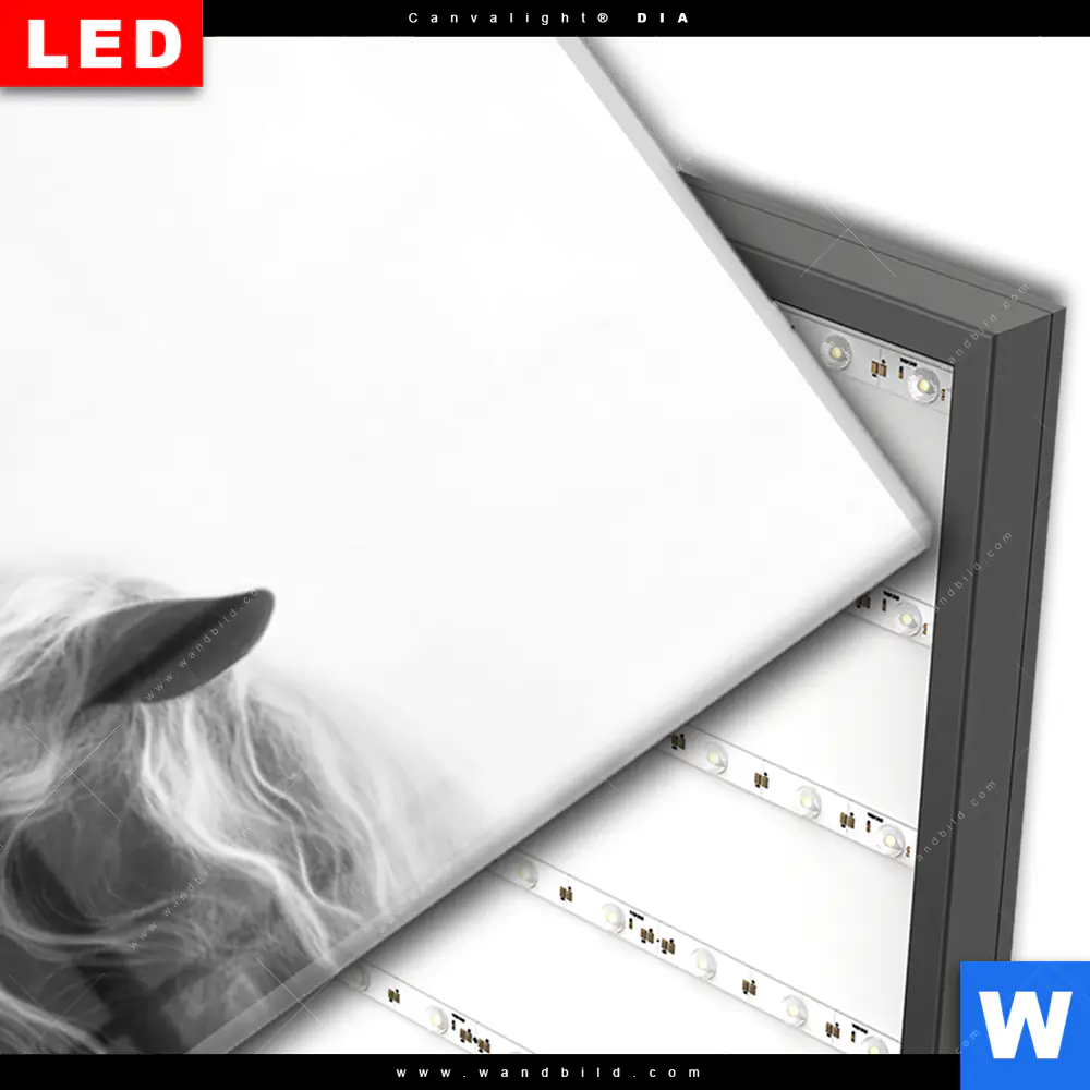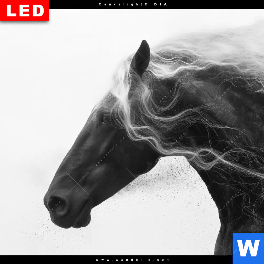 Wechselmotiv Acrylglas Canvalight® DIA | Schwarzes Pferd voller Energie | Schmal