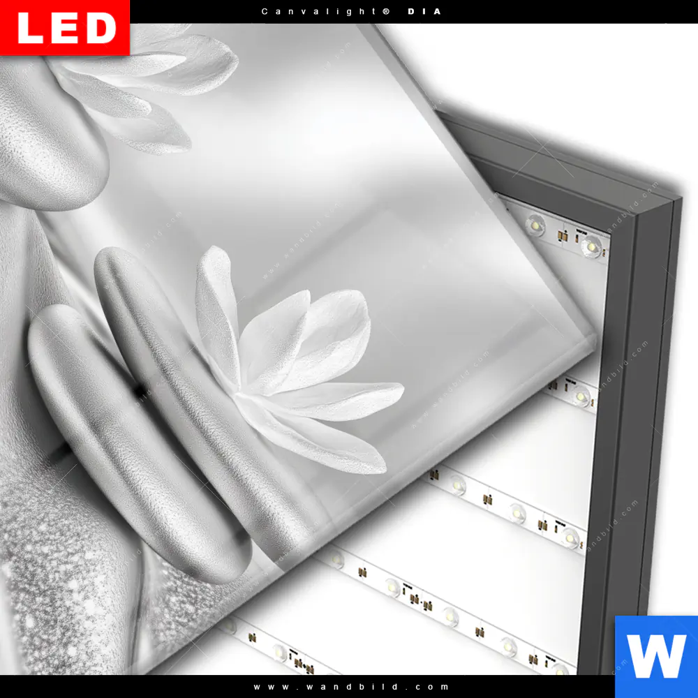 Wechselmotiv Acrylglas Canvalight® DIA | Silberne Zen Harmonie | Quadrat