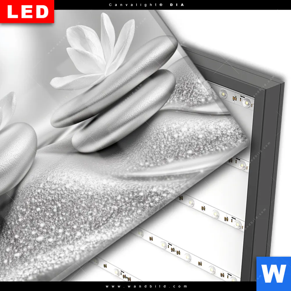 Wechselmotiv Acrylglas Canvalight® DIA | Silberne Zen Harmonie | Querformat