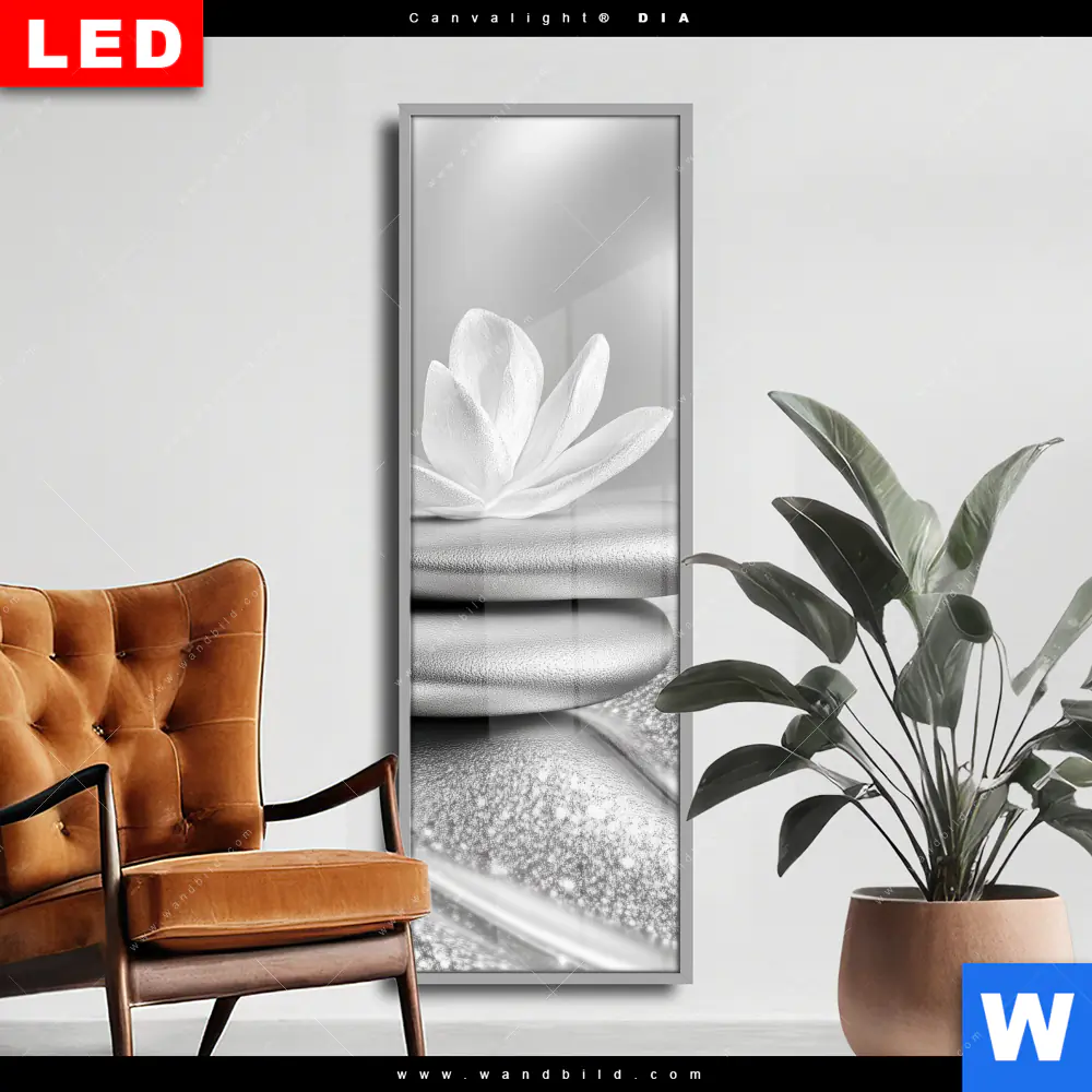 Wechselmotiv Acrylglas Canvalight® DIA | Silberne Zen Harmonie | Schmal