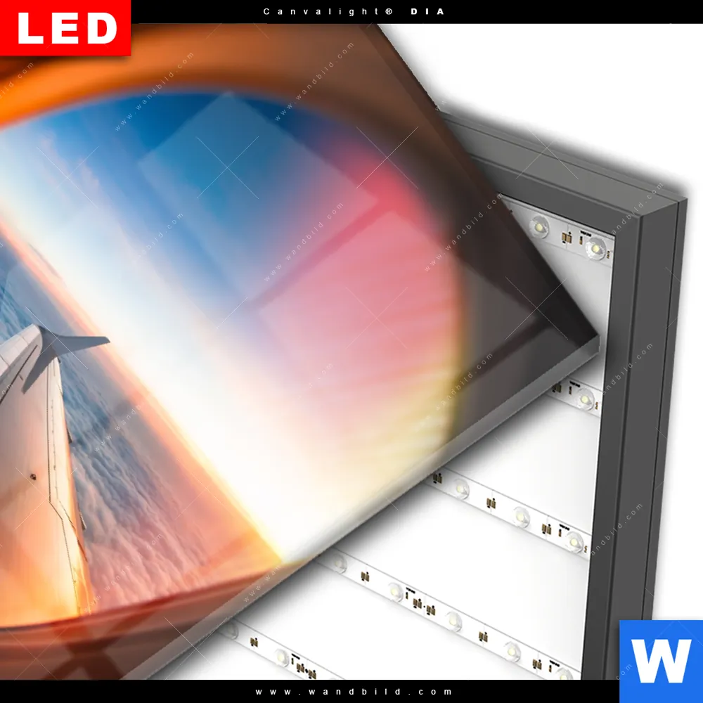 BEACHTE: Du solltest bereits ein Canvalight® DIA Leuchtbild mit austauschbarem Acrylglas-Motiv besitzen! Im Lieferumfang ist nur ein Wechsel-Acrylglas-Druck ohne Leuchtrahmen enthalten. Der Abdeckwinkel im Frontbereich des LED Bildes deckt umlaufend ca. 19 mm des Motives ab. Bei eigenen Motiven bitte darauf achten, wichtige Elemente in ausreichender Entfernung vom Rand zu platzieren, damit diese nicht verdeckt werden.