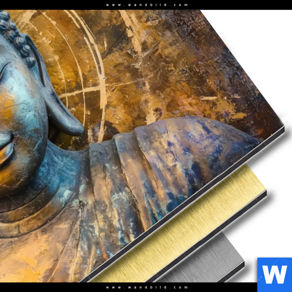 Buddha - Feng Shui Aluminiumbild mit metallischem Effekt inkl. vormontiertem Rückrahmen