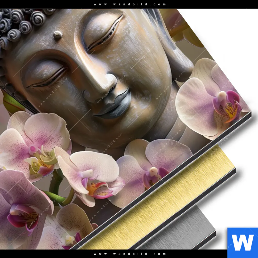 Aluminiumbild gebürstet | Buddha & Orchideen | Quadrat