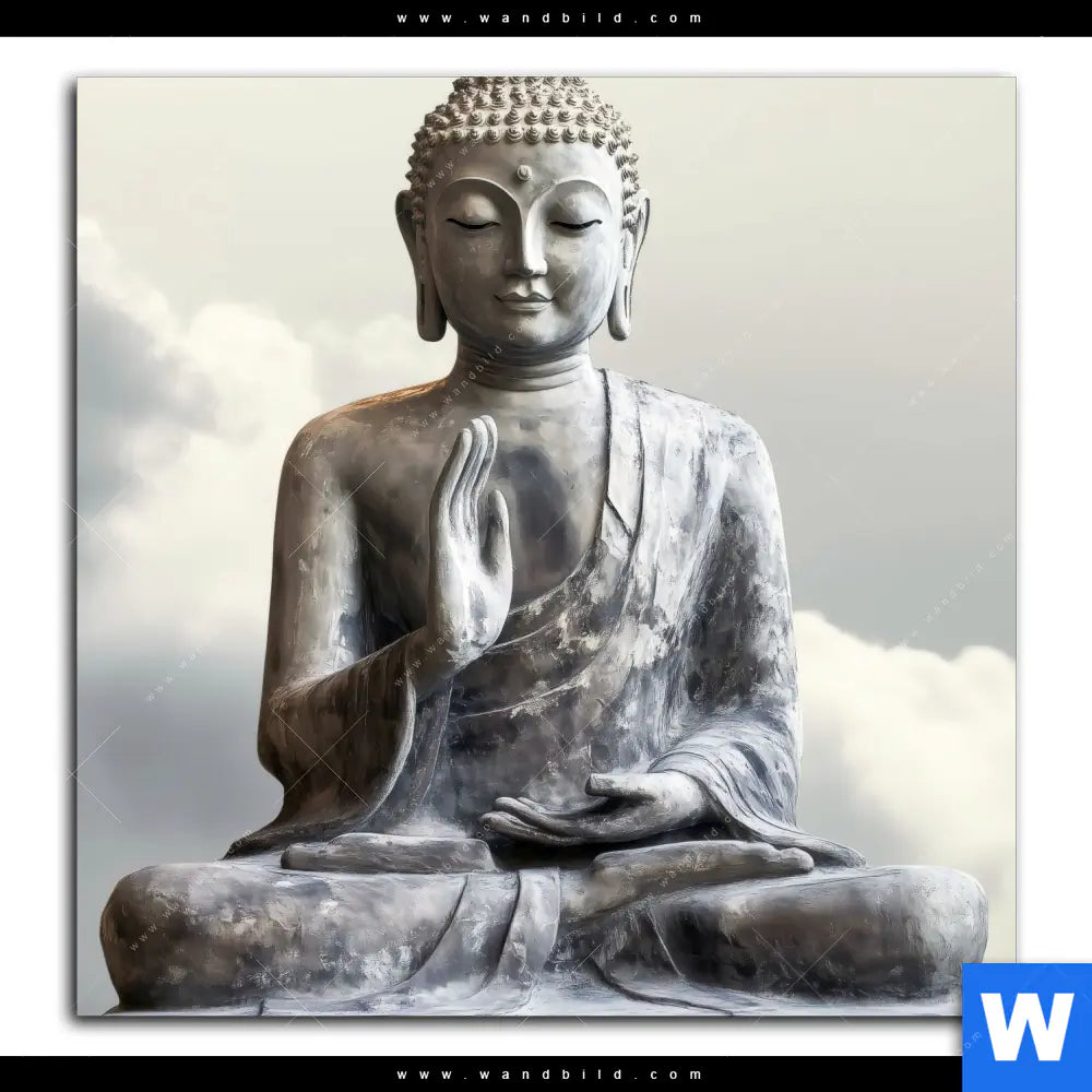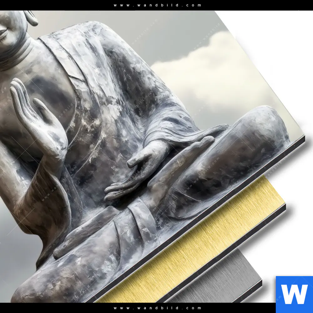 Buddha - Feng Shui Aluminiumbild mit metallischem Effekt inkl. vormontiertem Rückrahmen