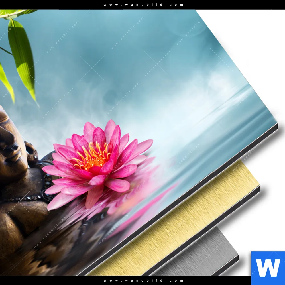 Buddha - Feng Shui Aluminiumbild mit metallischem Effekt inkl. vormontiertem Rückrahmen