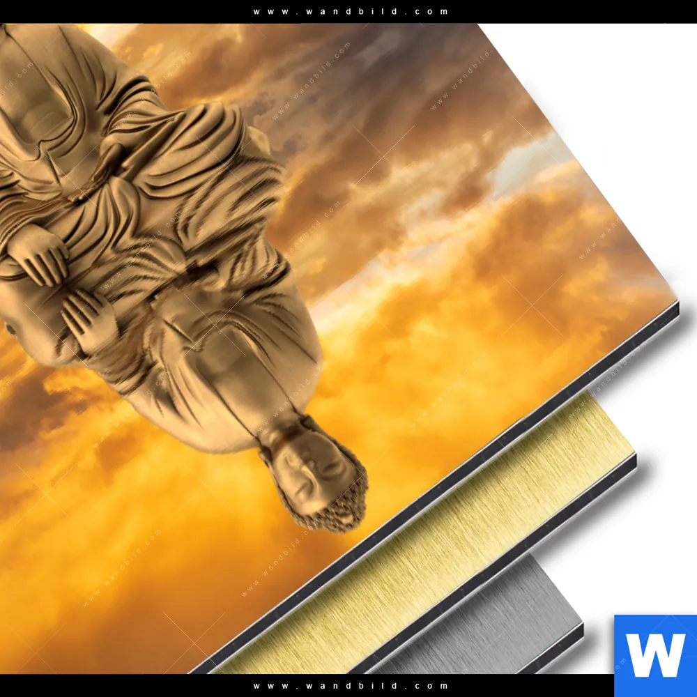 Buddha - Feng Shui Aluminiumbild mit metallischem Effekt inkl. vormontiertem Rückrahmen