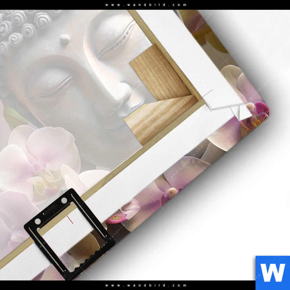 Buddha - Feng Shui, Blumen - Botanik Fotoleinwand aufgespannt auf Holz-Keilrahmen