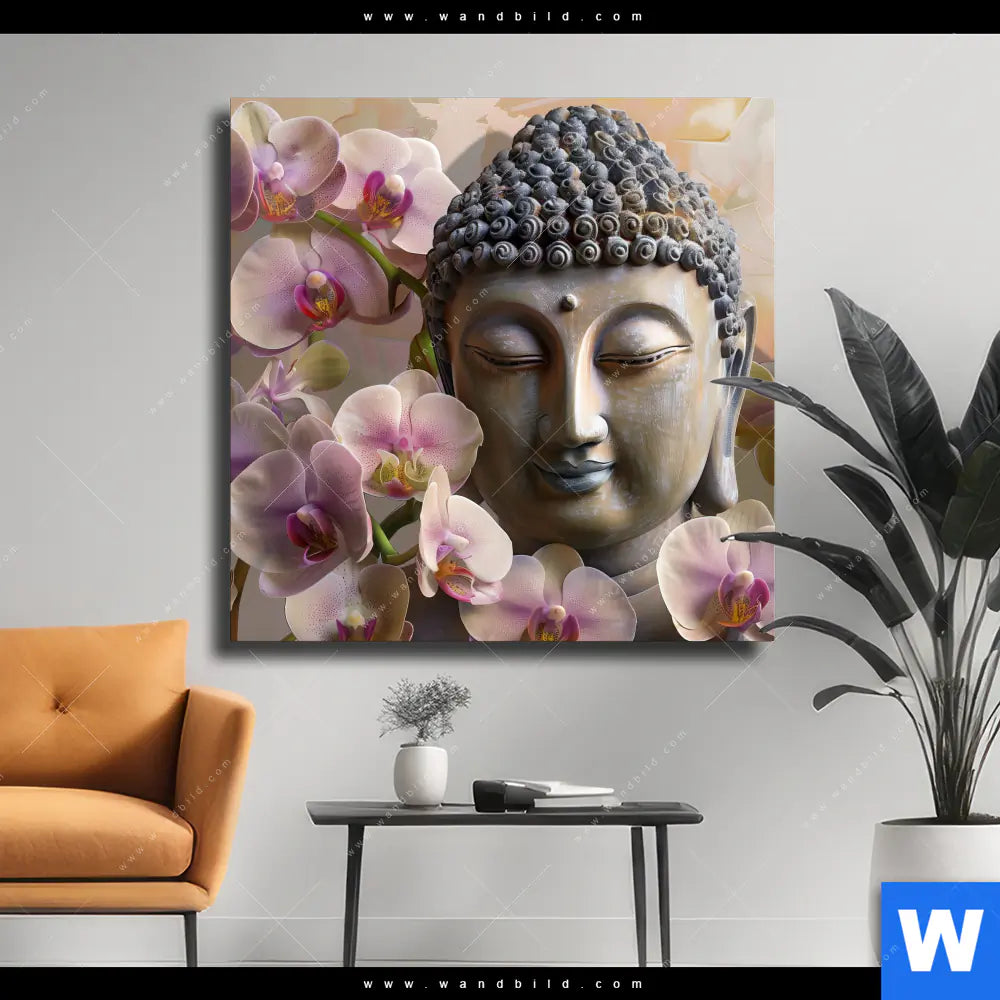 Leinwandbild | Buddha & Orchideen | Quadrat