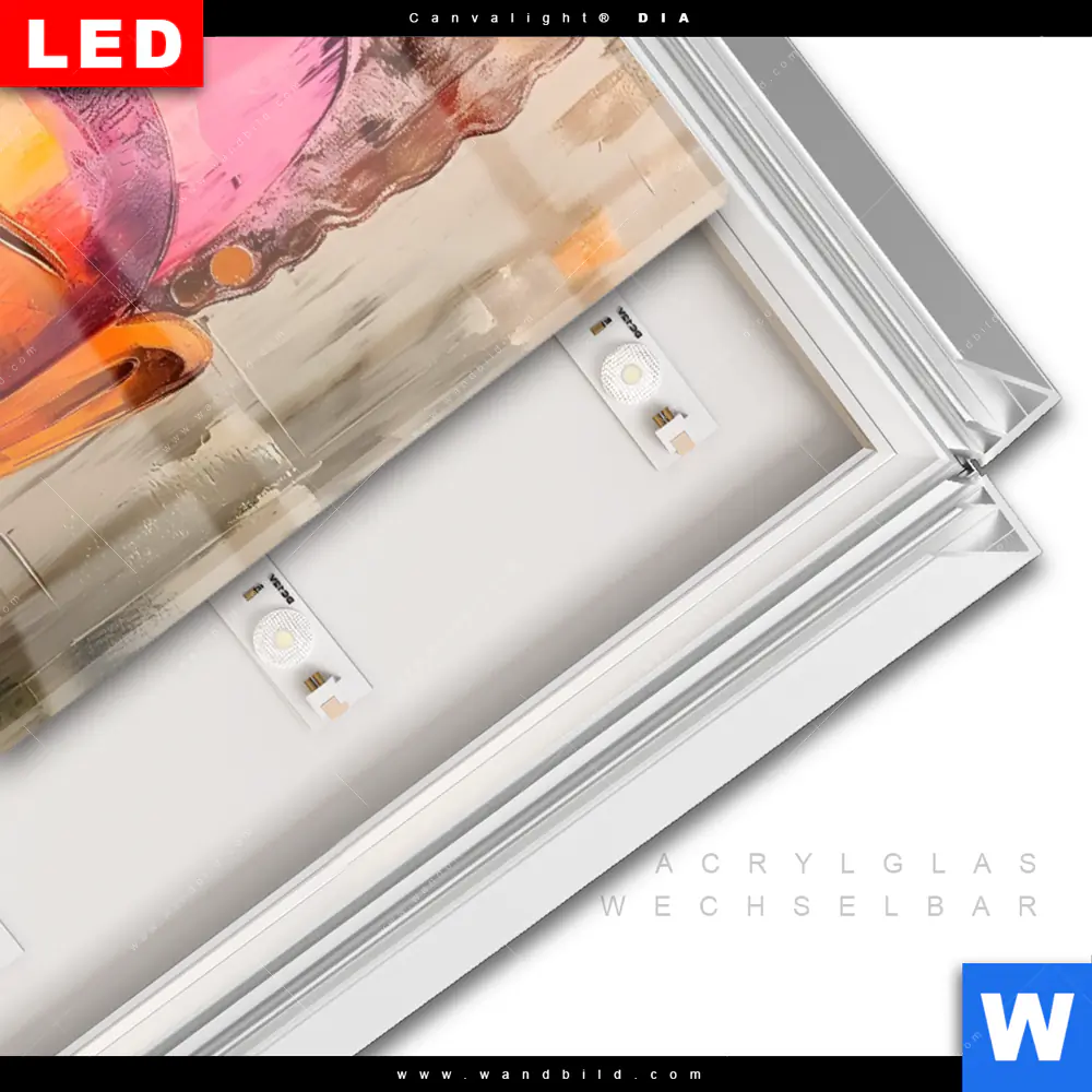 LED-Glasbild mit austauschbarem Acrylglas-Druck (Wechselbild)