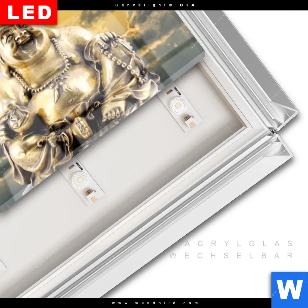 Canvalight® DIA Leuchtbild | Buddha bei Sonnenaufgang | Panorama