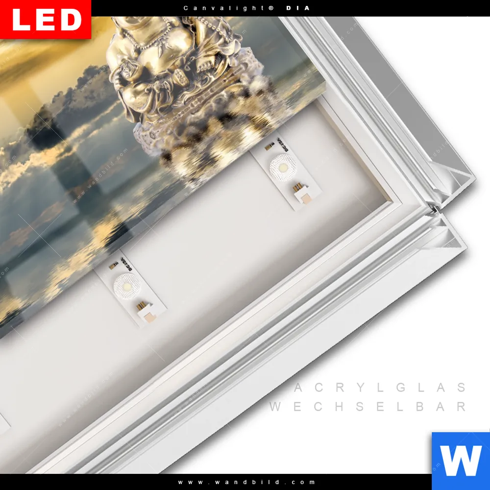 LED-Glasbild mit austauschbarem Acrylglas-Druck (Wechselbild)