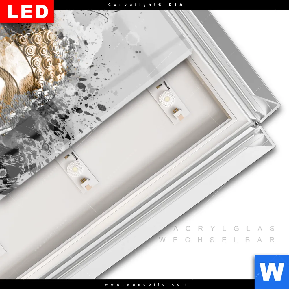 LED-Glasbild mit austauschbarem Acrylglas-Druck (Wechselbild)