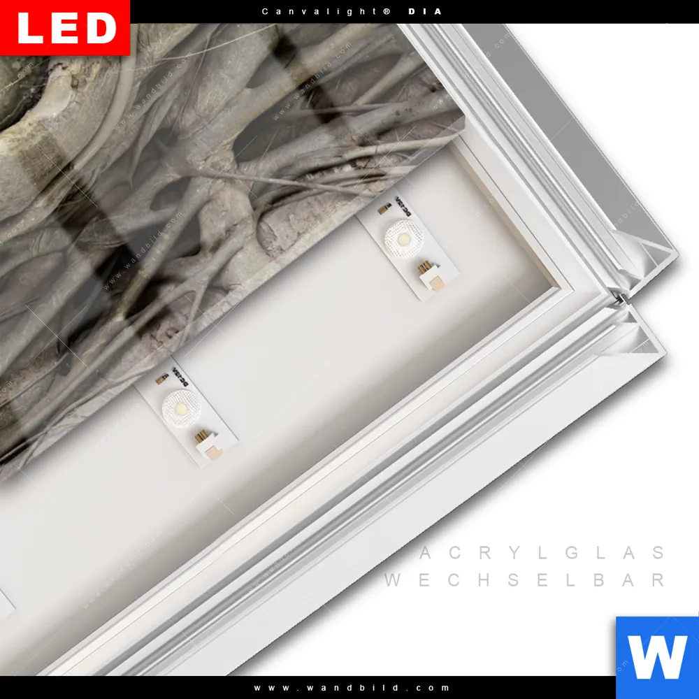 LED-Glasbild mit austauschbarem Acrylglas-Druck (Wechselbild)